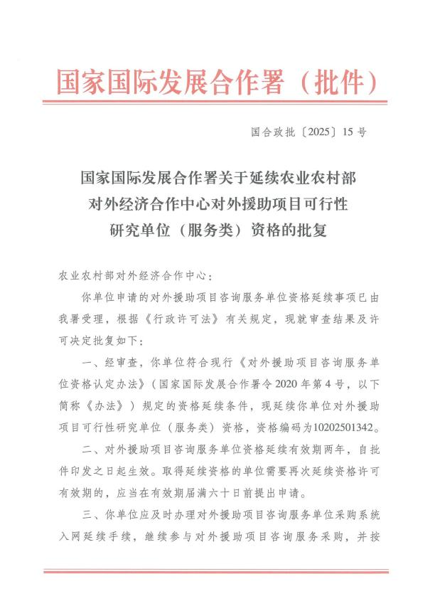 • 发布单位:农业农村部对外经济合作中心