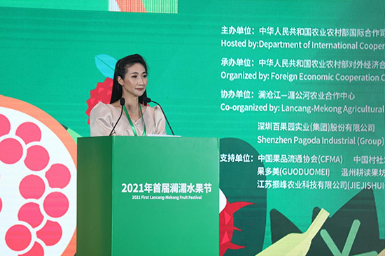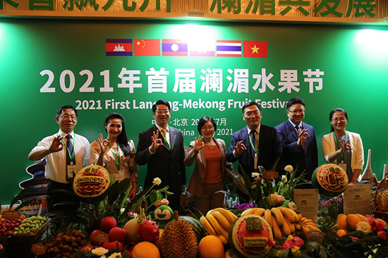2021年7月5日,由农业农村部国际合作司主办、对外经济合作中心承办的首届澜湄水果节在京拉开帷幕。农业农村部国际合作司副司长韦正林、外交部亚洲司副司长方虹、泰国驻华大使馆公使衔参赞芭桐娃蒂(Pathumwadee Imtour)、缅甸驻华大使馆参赞瑞辛欧(Shwe Sin Oo),越南驻华大使馆参赞陈清海(Tran Thanh Hai)、柬埔寨和老挝驻华大使馆官员、联合国粮食及农业组织驻华代表处助理代表张忠军先生等出席了活动。农业农村部对外经济合作中心副主任李洪涛主持了启动仪式。