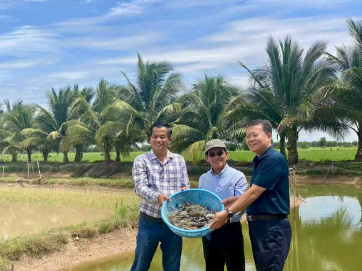 为落实2023年中柬《关于构建新时代中柬命运共同体的联合声明》,推动共建“鱼米走廊”,农业农村部对外经济合作中心联合上海海洋大学、柬埔寨农林渔业部渔业局等,共同在柬埔寨实施智慧农场一体化发展计划(SFIDPP)——智慧渔业试点。项目确立了茶胶省3个示范点,推广适合热带地区的“水稻—罗氏沼虾”数字化种养模式,利用数字化养殖技术,构建数字化感知和智慧养殖管理系统,示范推广面积达到34.6公顷,累积培训柬埔寨农民及技术官员200人次以上,罗氏沼虾苗种标粗养殖成活率提升87.5%以上,显著提升了当地稻虾种养技术水平,助力农户增产增收。项目实施成果在新华社、人民日报等宣传报道,作为唯一农业项目案例入选2025世界人工智能大会《中国智·惠世界》案例集。